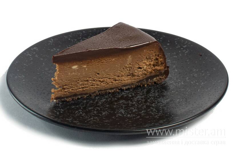 Ніжний чізкейк з вершкового сиру та шоколаду, доповнює десерт основа з печива сабле з додаванням какао.