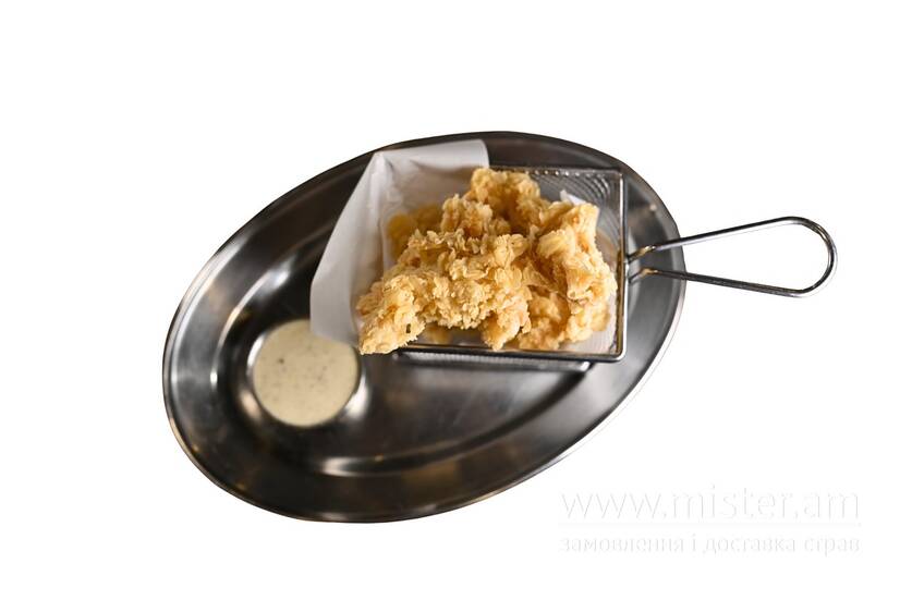 Соковите куряче філе в хрумкій паніровці з соусом трюфельний айолі.
