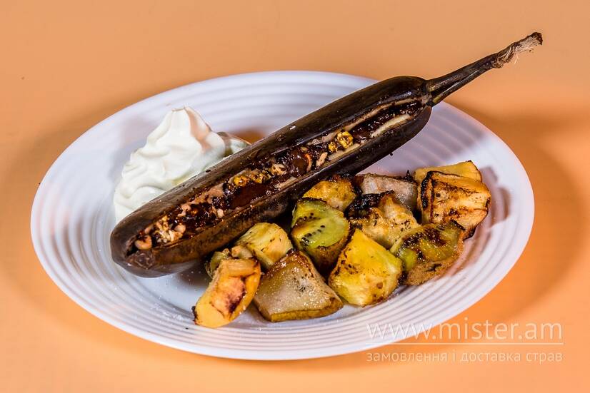 Фрукти на мангалі зі збитими вершками
