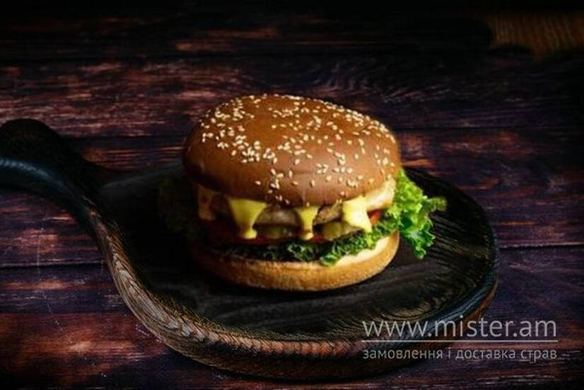 Яловича котлета, бекон, томат, огірок солоний, цибуля маринована, лист салату, фірмовий соус Джек Дениелс.