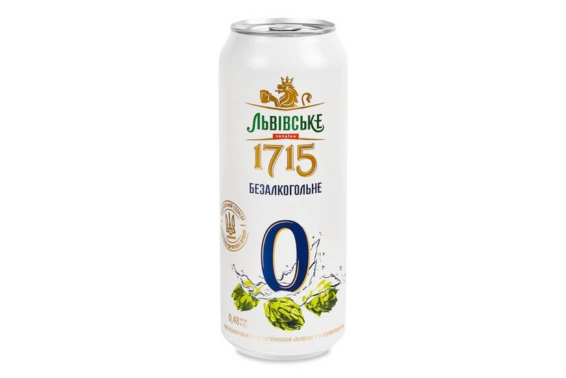 Пиво б/а 0% світле пастеризоване "Львівське 1715"