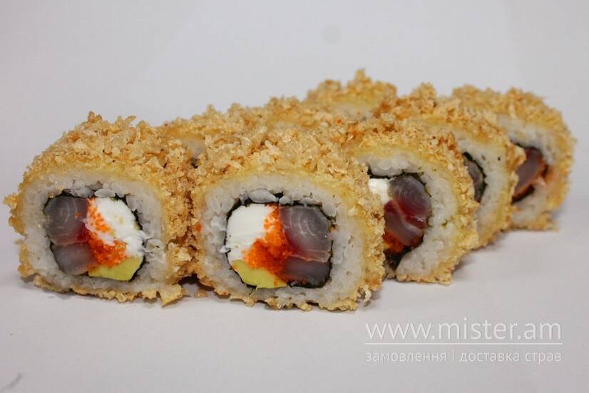 Рис, окунь, сир Філадельфія, авокадо, ікра масаго.