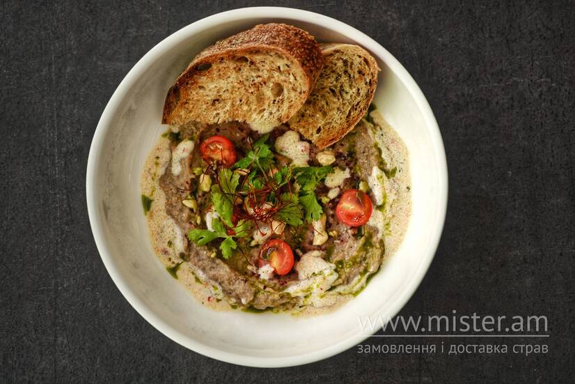 Тости, кінза, йогуртова заправка, мікс насіння, томати чері.