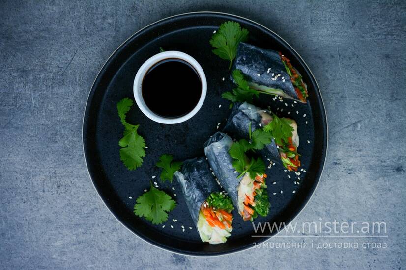 Горіховий соус, хіяші, огірок, чілі, морква, зелена цибуля, норі.