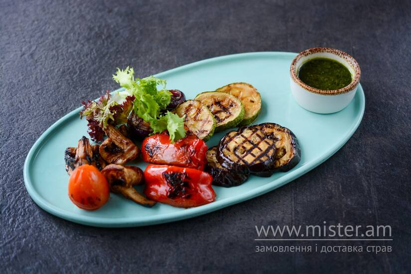 Овочі на грилі з соусом песто