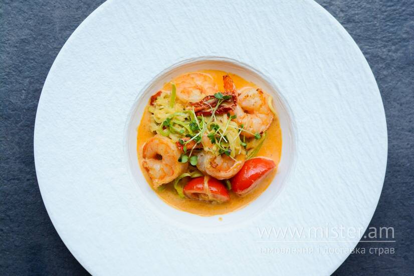 Креветки, в`ялені томати, соус том ям.