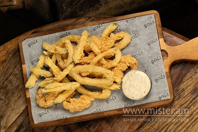 Ребро печене, картопляні діпи, соус барбекю, кінза.