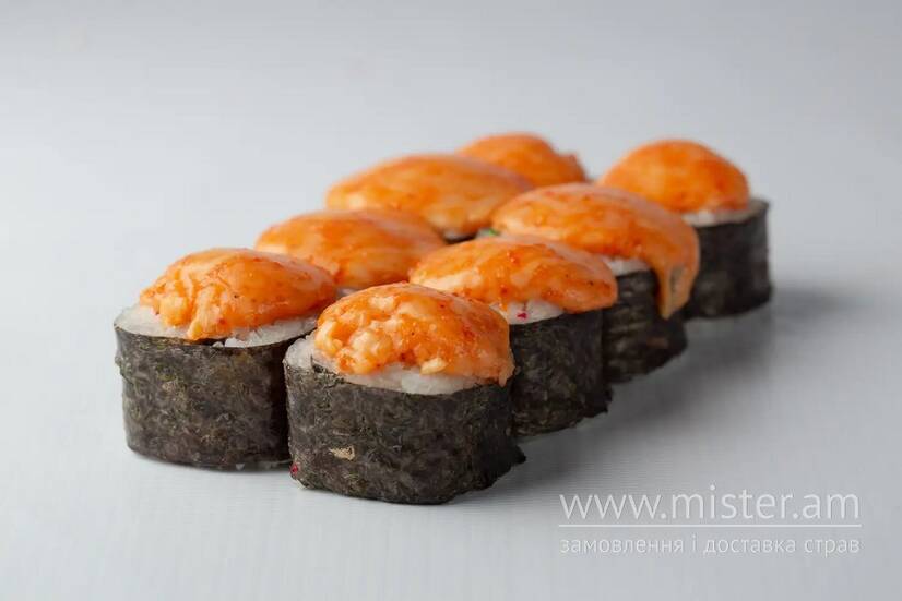 Мідії, омлет томаго, авокадо, огірок, соус для запікання.