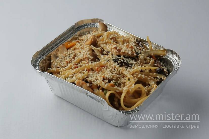 Свинина, цукіні, перець солодкий, цибуля ріпчаста, морква, фірмова або гостра заправка.
