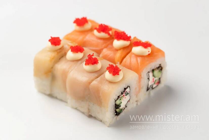 Лосось х/к, есколар, огірок, сир вершковий, ікра тобіка.