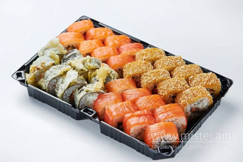 Філадельфія з лососем класична, Філадельфія з лососем і авокадо, рол в панко Філадельфія, рол в темпурі Філадельфія.