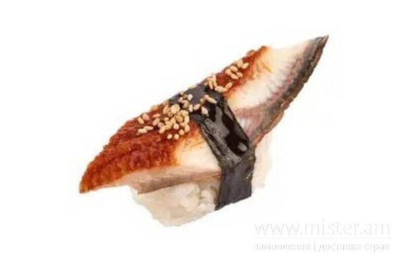 Суші: Суші з лососем, Суші з тунцем, Суші з тигровою креветкою, Гункан спайсі з тигровою креветкою, Гункан з ікрою тобіка, Гункан спайсі з з тунцем, Гункан спайсі з лососем, Суші-бургер з лососем, Суші-бургер з тунцем, Суші-сендвіч, Суші-бургер з креветкою, Суші-сендвіч вегетаріанський, Суші-сендвіч сирний, Суші-сендвіч з куркою, Суші-дог, Суші-дог вегетаріанський, Суші-дог з куркою