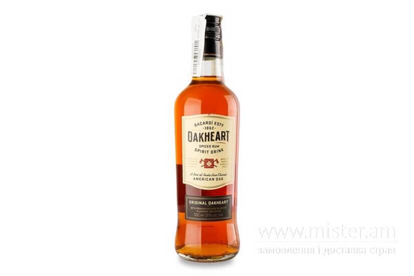 BACARDÍ Oakheart - це напій на основі ромових спиртів, що були витримані в дубових діжках, а на фінальній стадії до них додали мед та натуральні спеції - ваніль, корицю та мускатний горіх. Вміст алкоголю 35% вимагає визначати BACARDÍ Oakheart, як напій на основі рому, але він виробляється з тих самих високоясних спиртів, що й уся продукція BACARDÍ. Має приємний солодкуватий пряний смак з відтінками спецій, карамелі та меду. Чудово п'ється в чистому вигляді, з колою та в складі коктейлів.