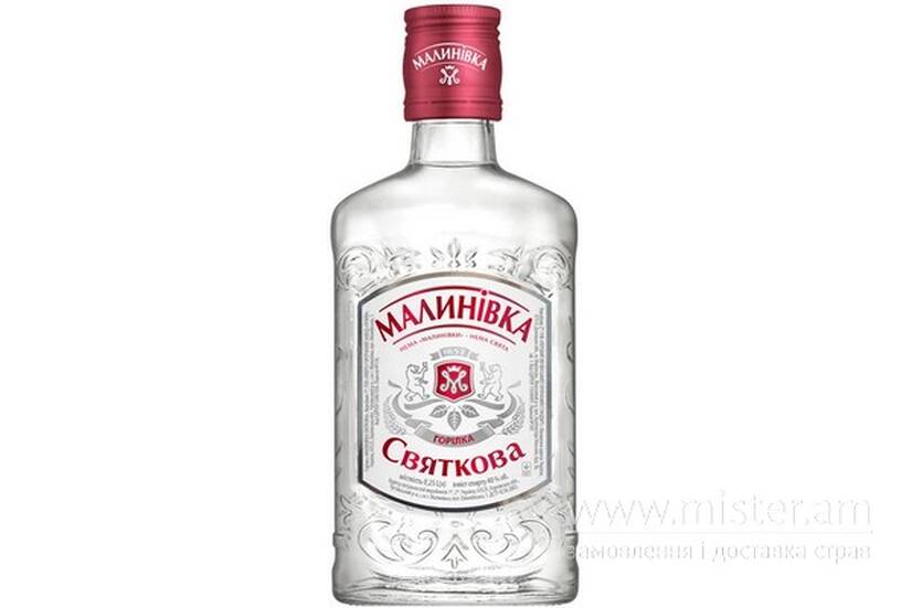 Горілка, яка створює настрій і робить свято з будь-якого застілля. Багатий стіл (соковите м'ясо, малосольні помідорчики, хрусткі огірочки, оселедець із ніжними приправами), улюблені друзі... але чогось бракує. "А СВЯТО де?". "СВЯТО Є!" — це горілка "Малинівка".