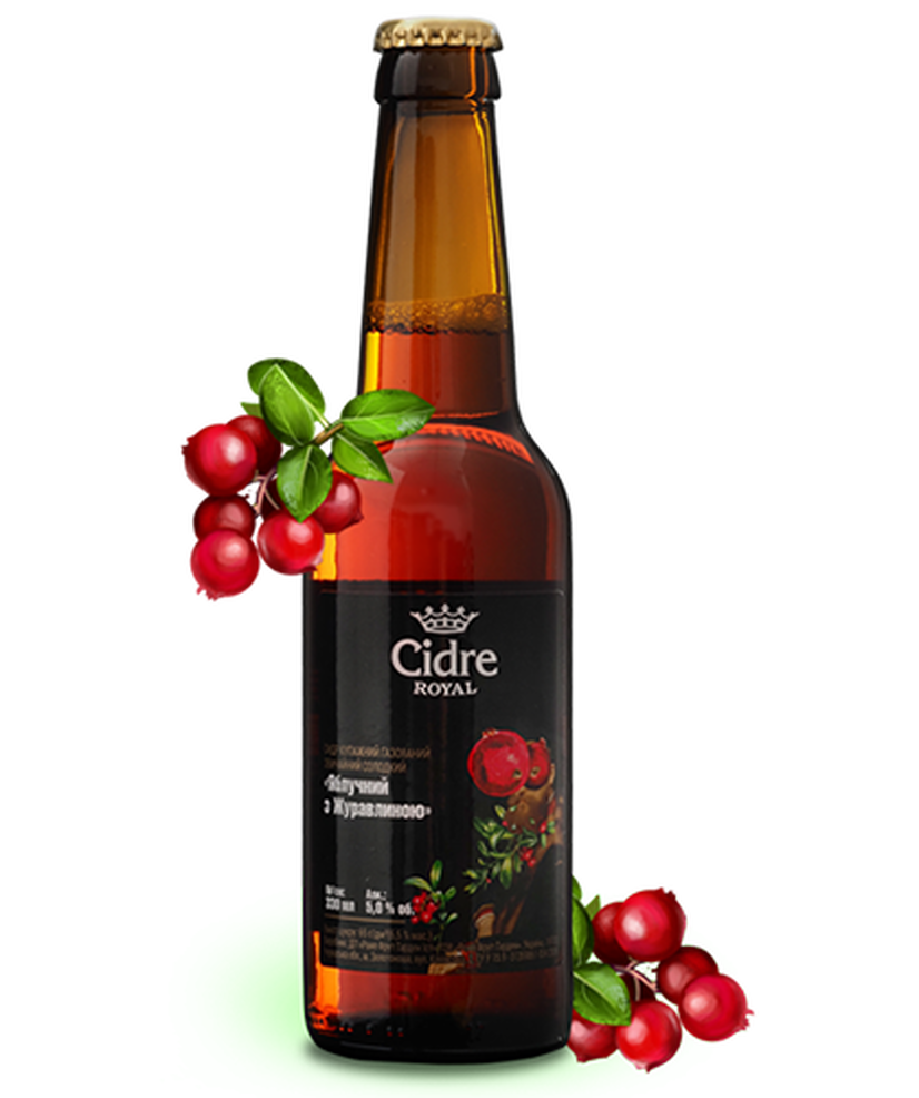 Тонізуючий купажний сидр Роял, виготовлений шляхом зброджування натурального яблучного соку з додаванням концентрованого соку журавлини. Сприяє покращенню апетиту та настрою