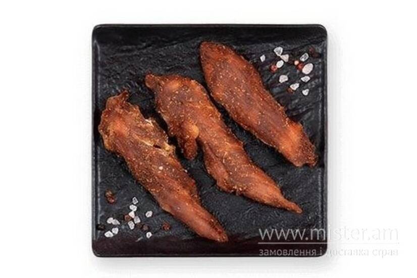 Чіпси курячі з паприкою - це смачна популярна м'ясна закуска до пива. Чіпси являють собою тонко нарізані пластини сиров'яленого курячого м'яса.