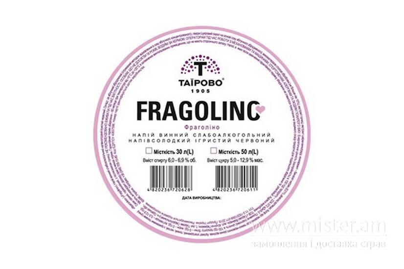 Таїрово/Напій винний слабоалкогольний ігристий: Таїрово "Fragolino" Червоний, Таїрово "Fragolino" Білий, Таїрово "Asti Salute", Таїрово "Prosecco"