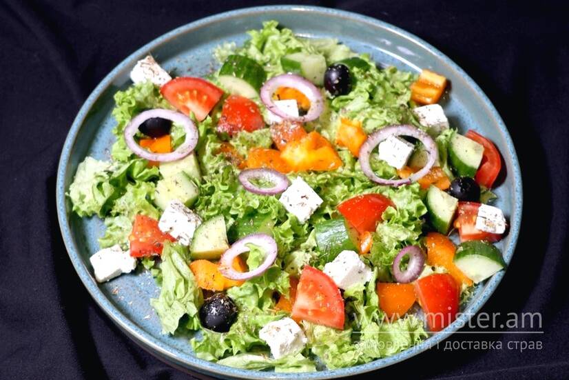Соковиті овочі, маслини та фета в дуеті з лаймово-оливковим соусом. Легка класика зі свіжим акцентом.