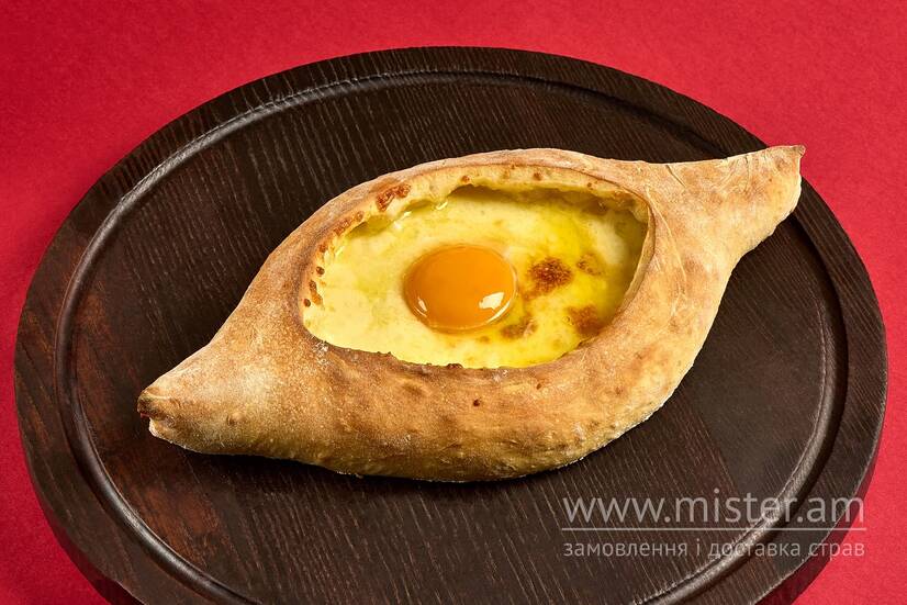 Грузинський човник із бринзою, сулугуні та яйцем, запечений до золотистої скоринки.