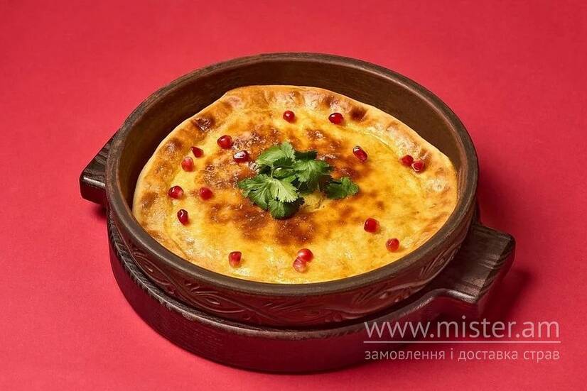 Традиційний імерульський хачапурі, приготований у кеці за класичним рецептом. Тонке тісто, з бринзою й ароматними грузинськими спеціями. Страва зберігає автентичний смак і дух домашньої грузинської кухні.