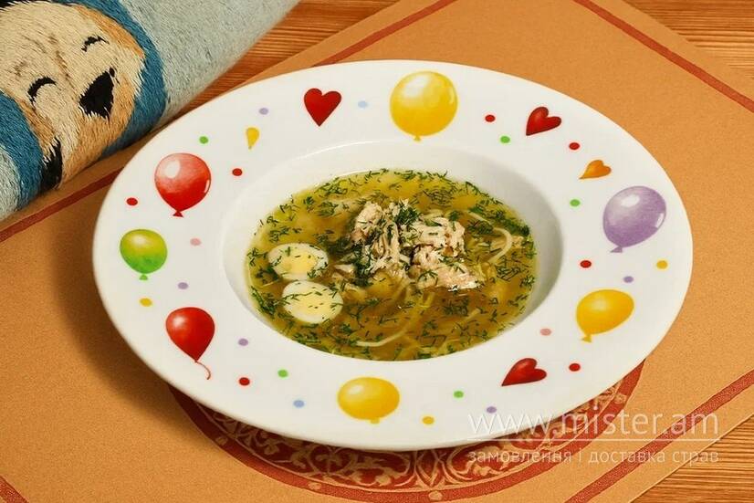 Курячий бульйон з локшиною та перепелиним яйцем