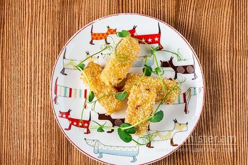 Хрусткі, золотисті нагетси з ніжним розплавленим сиром усередині.