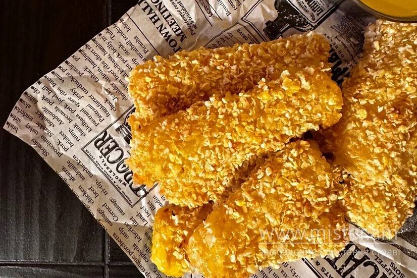 Сулугуні паніруємо в кукурузних пластівцях.