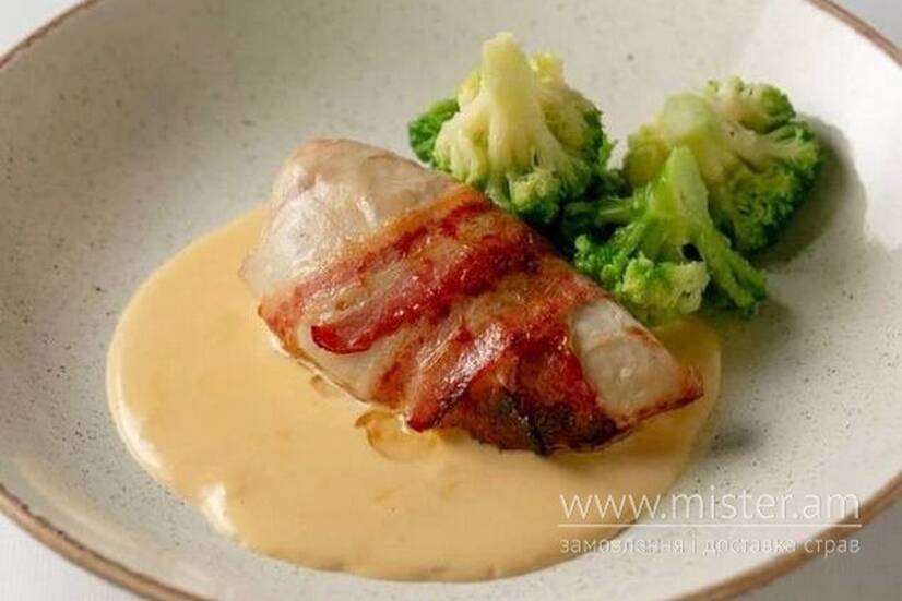 Куряча грудка з беконом, брокколі та соусом Чеддер
