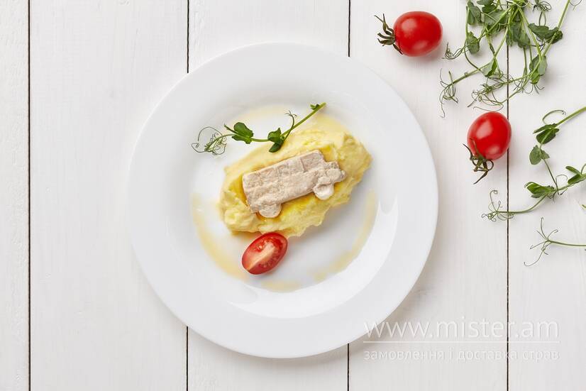 Спагеті з міні мітболами, томатним соусом, пармезаном та мікрогріном