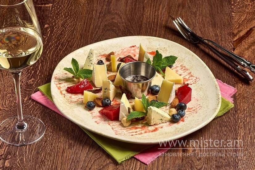 Камамбер, мемель блю, пармезан, фініки, груша пашот, мигдаль, фундук, мед трюфельний.