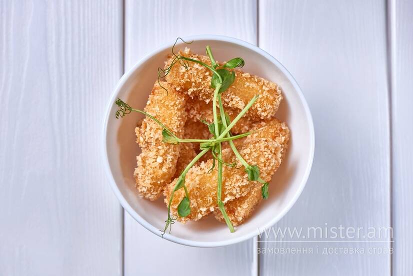 Хрусткі смаколики: Курячі нагетси, Картопля фрі, Картопля по-селянськи з часником та зеленню, Картопляні смайли, Солодка фрі з батату та соусом із журавлини, Ванна фрі з беконом та сирним соусом , Камамбер фрі з соусом із журавлини , Креветки в паніровці з соусом тартар , Корн-дог мікс чиз-дог, Корн-дог класичний, Житні грінки з часником та зеленню, Крейзі снек мікс, Цибулеві кільця з соусом світ чилі, Стріпси з курячого філе, Хрусткі курячі крильця
