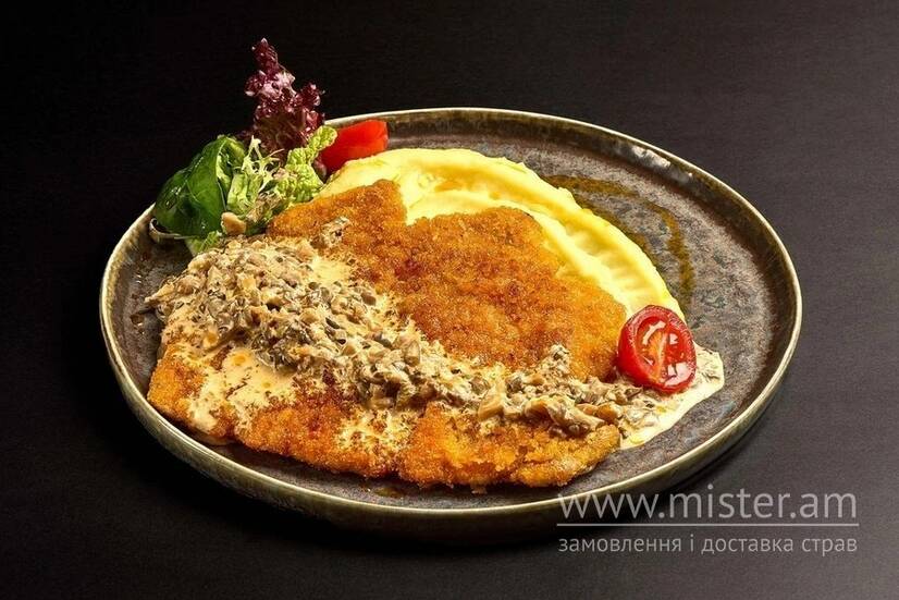 Шніцель зі свинини з картопляним пюре та трюфелем
