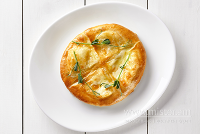 Закритий пиріг з бринзою всередені та сулугуні зовні.