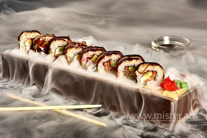 Авокадо, Філадельфія, ікра масаго, стружка тунця, соус унагі.