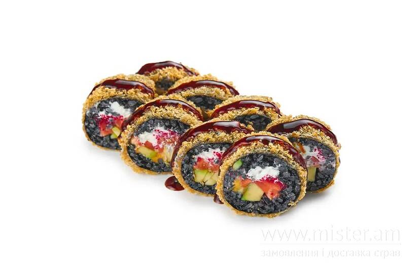 Чорнило каракатиці, ікра, лосось, авокадо, чеддер, філадельфія, кляр, сухарі.