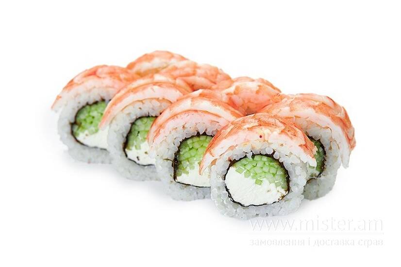 Рис, норі, сир Філадельфія, огірок та креветка.