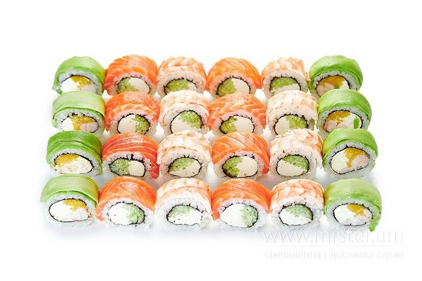 Філадельфія з лососем огірком, Філадельфія с креветкою, Зелений дракон.