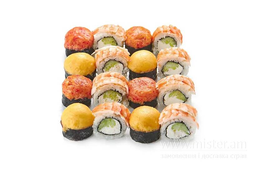 Філадельфія з креветкою та огірком, Запечений рол з лососем та крабом.