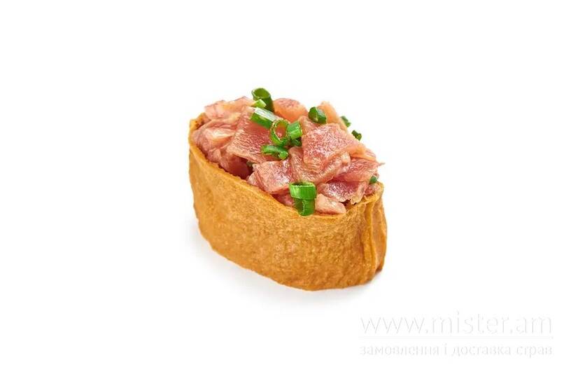 Cир інарі, соус вустричний, бальзамік, тунець, цибуля.