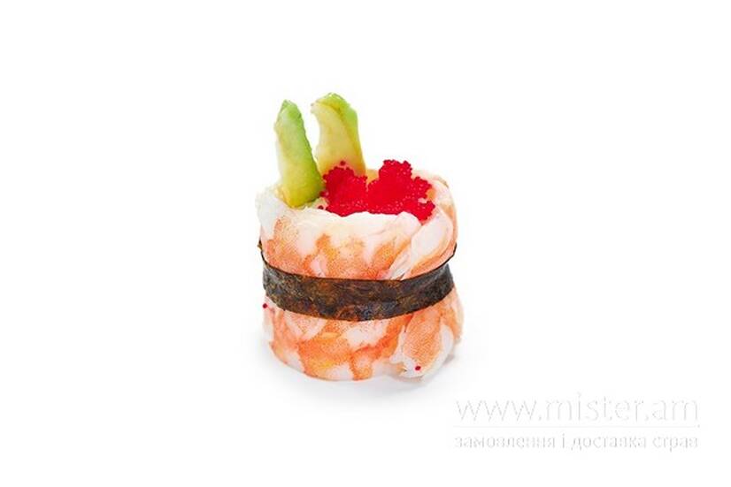 Філадельфія, норі, креветка, ікра летючої риби, авокадо.