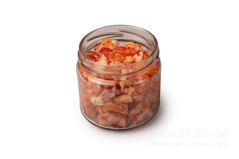 Лосось, креветка, майонез японський, огірок маринований, цибуля марс, ікра летючої риби.