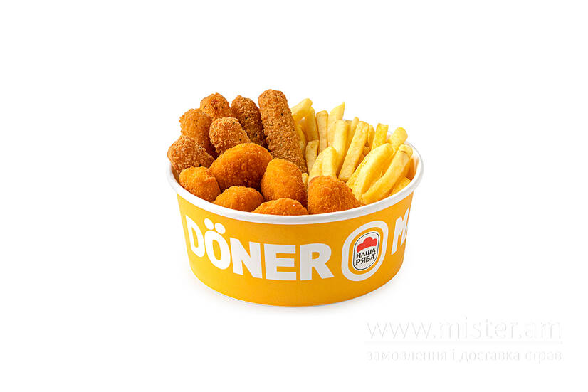 Смакуй фрі меню: хрумкі курячі нагетси, ароматні сирні палички з моцарели, класична картопелька фрі.