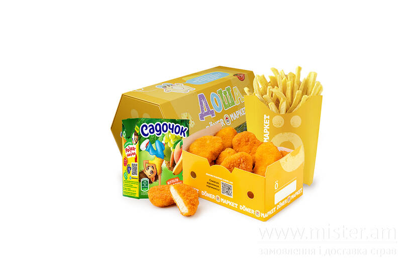 Нагетси 6 шт., картопля стандарт, сік 200 мл.