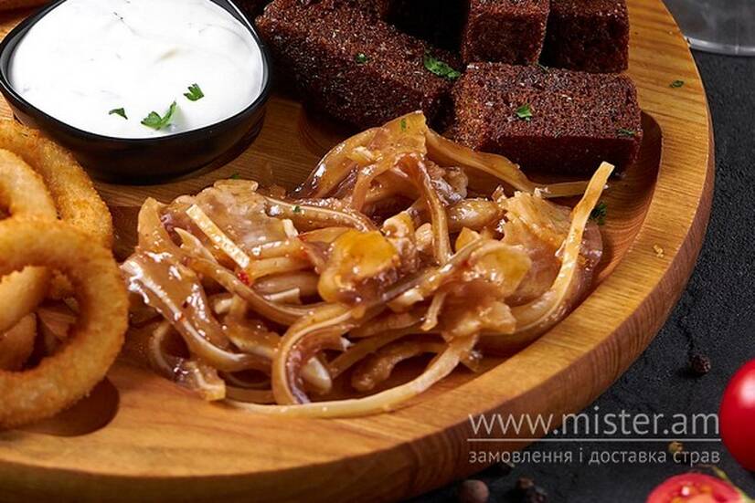 Пивні дошки: Вушка Unagi, Грінки з часниковим соусом, Креветки смажені, Сирні палички, Цибулеві кільця, Крильця Унагі, Крильця Медові, Крильця BBQ, Крильця HOT, Ребра копчені , Мідії в мушлі, Хвости креветок панко, Кільця кальмара, Анчоуси фрі, Смажений чорноморський бичок