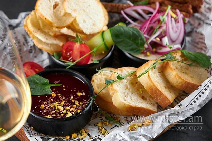 Паста креветкова, паста з оселедцю, паштет з телячої печінки, грінки.