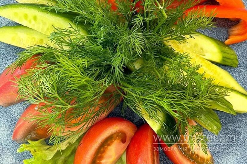Помідор, огірок, перець, зелень.