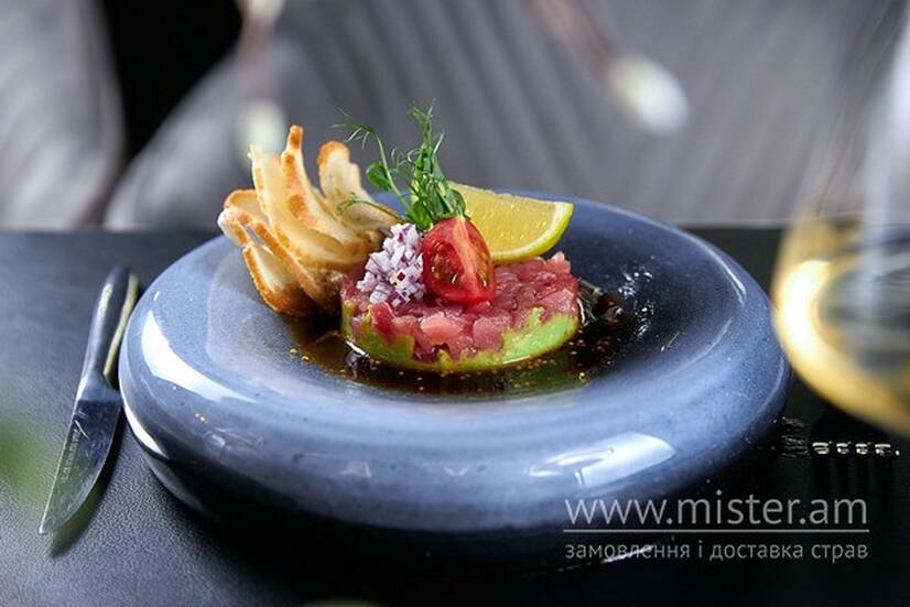 Холодні закуски: Паштет з телячої печінки з ягідним кюлі та фісташками, Форшмак родом із Одеси, Асорті сала, Оселедець з картоплею, Овочева тарілка, Фірмові намазки, Сьомга слабосолена, Сирне асотрі, М΄ясне асорті, Брускета з сьомгою та авокадо, Брускета с ростбіфом