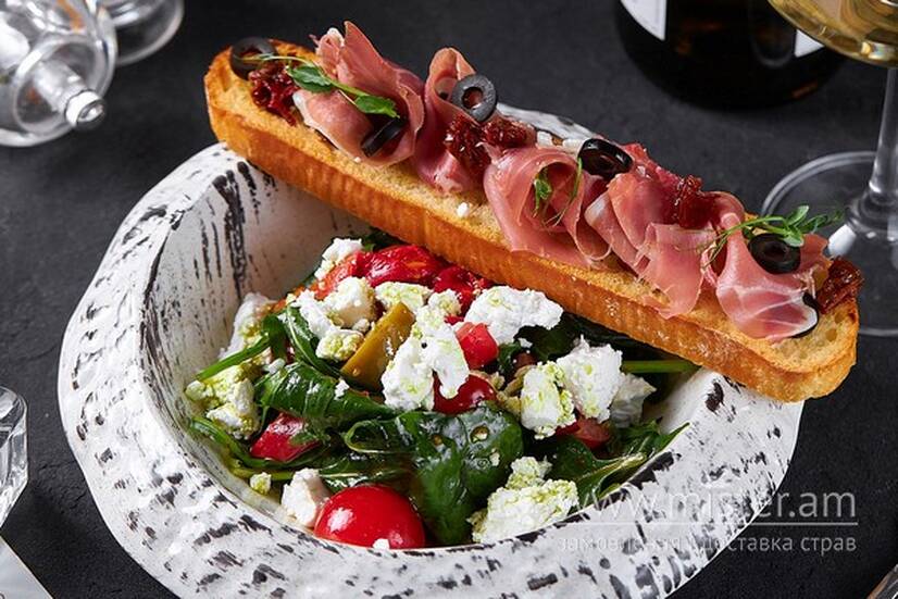 Drova Салат з запеченим перцем, фетою та брускетою з прошуто