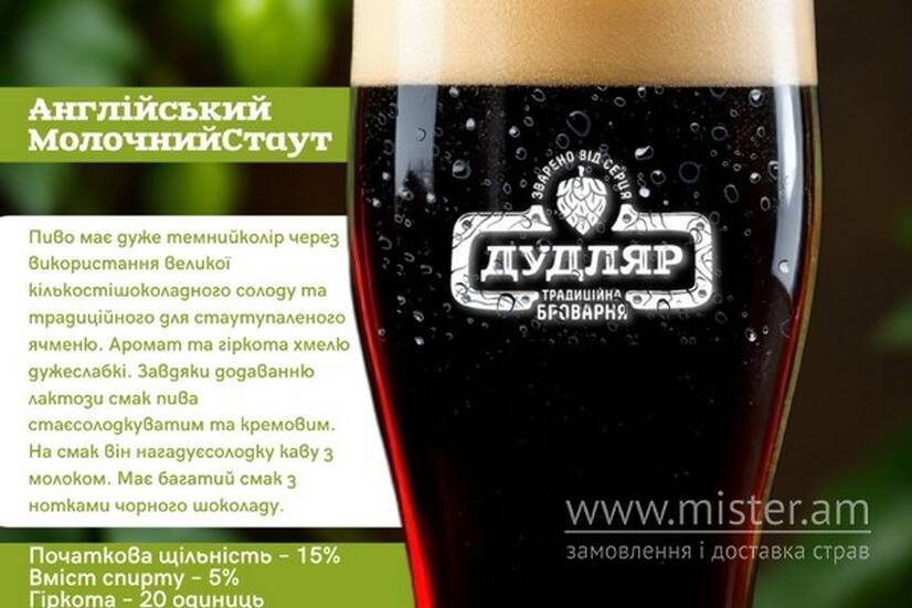 Дудляр Пиво "Дудляр Англійський Молочний стаут" 1 л (розливне)