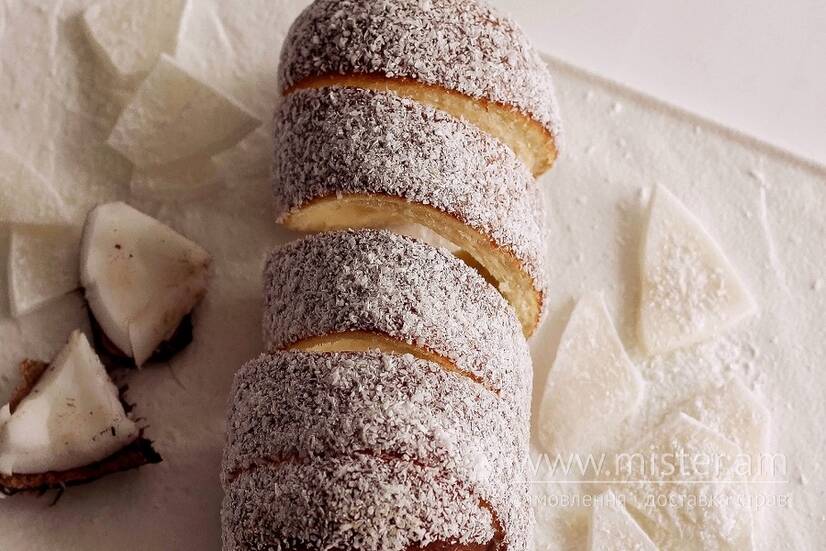 Кюртош з кокосом — для поціновувачів тропічної свіжості: ароматна скоринка, щедро обсипана ніжною кокосовою стружкою, дарує делікатні вершкові нотки та легкий елемент екзотики в кожному хрумкому шматочку!